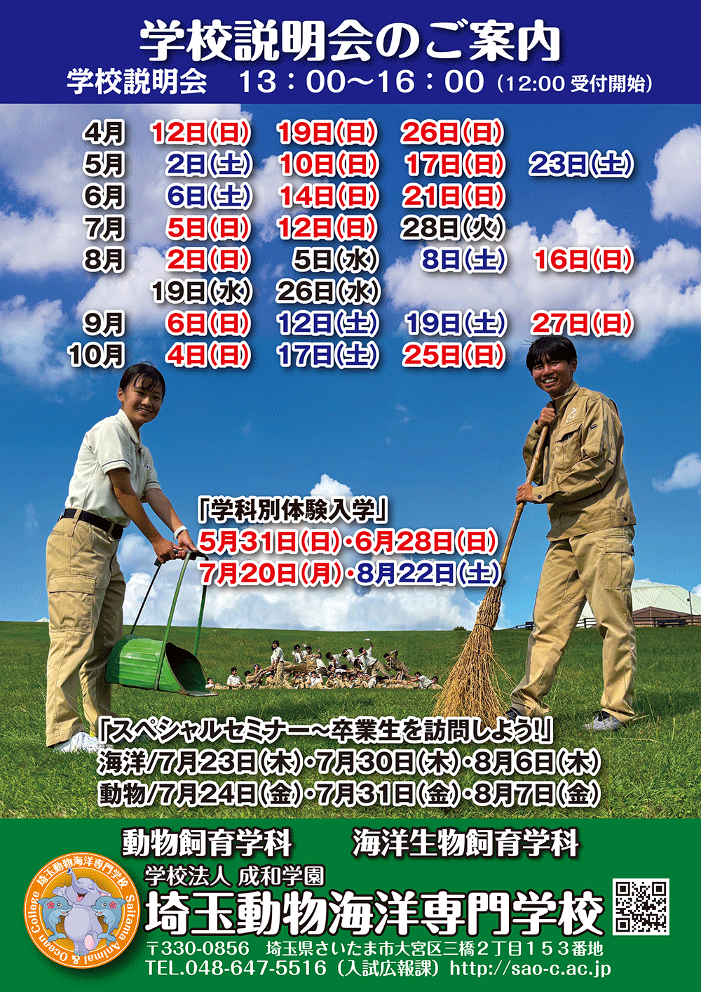 飼育技術の習得はもちろん、インターン実習を通して就職活動を行います。実習先は全国の海洋生物関連施設となります。(一部抜粋)