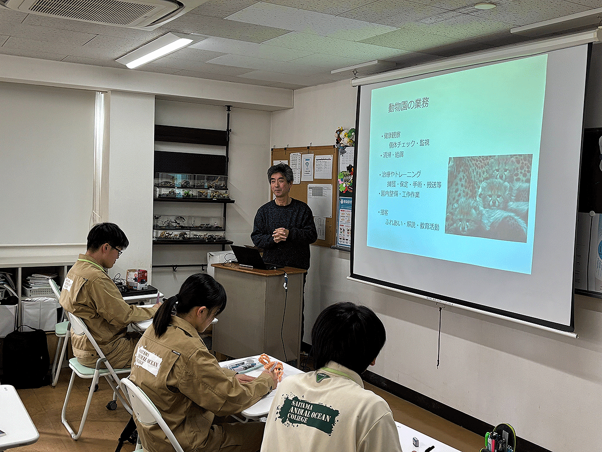 特別講義として、今回は群馬サファリパークより北村園長にお越しいただきました。飼育員として必要な資質やスキル、求められる事など盛り沢山の講義となりました。