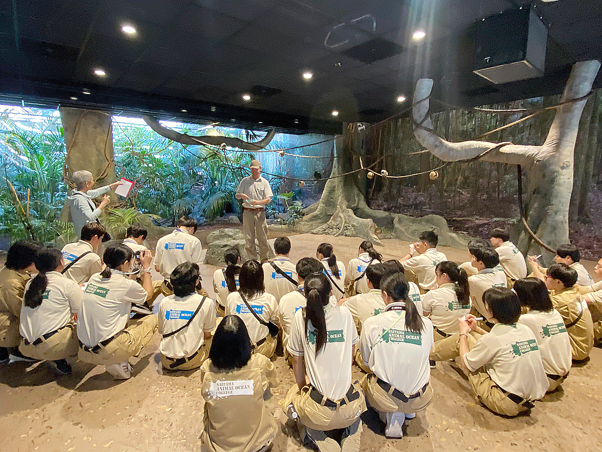 1日目は、両学科分かれての見学。動物飼育学科は、シドニー動物園へ。室内型の園内を見学しながら、動物の展示、福祉への取り組みなどを学びました。
