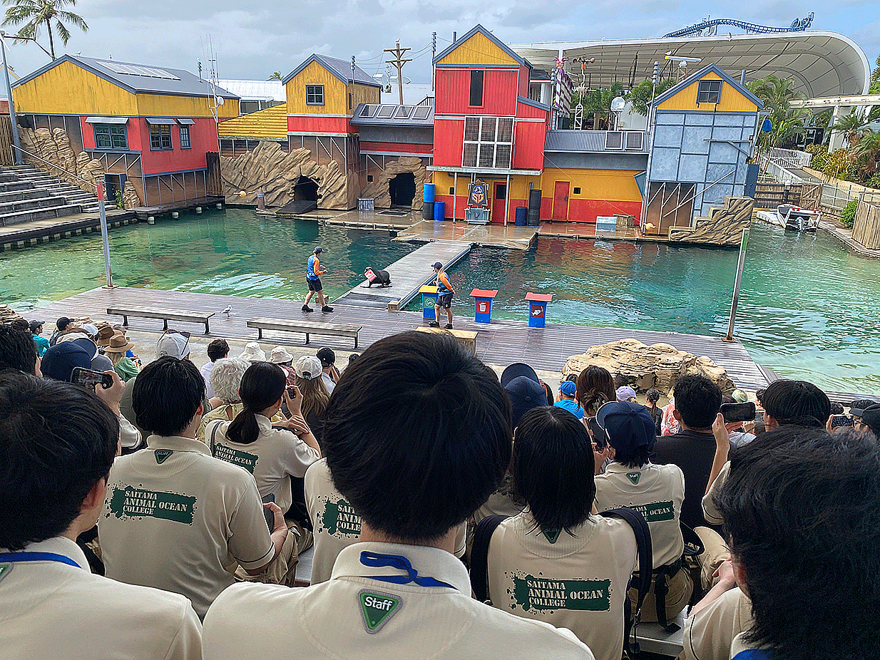 Seal show、Dolphin showの見学や照屋様の講義など盛り沢山の研修となりました 午後は自由見学で、遊園地エリアや水族館エリアなど各々で楽しみました。