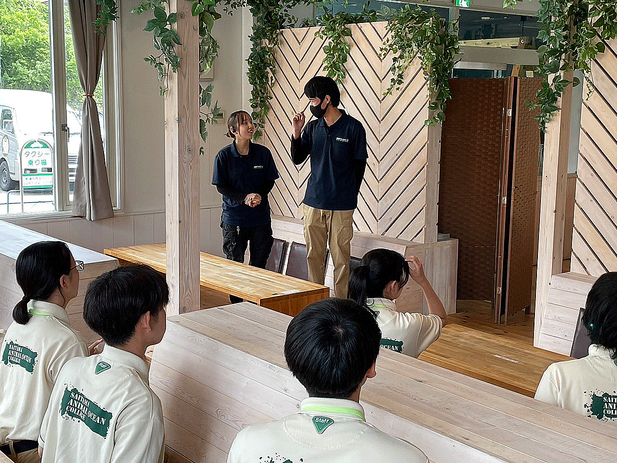 3日目、続いて那須どうぶつ王国での研修です。半谷様より動物園の役割や心構えなどをレクチャーしていただきました。また、様々なパフォーマンスの見学や魅力ある展示手法の見学、卒業生に話を聞いたりなど盛りだくさんでした。