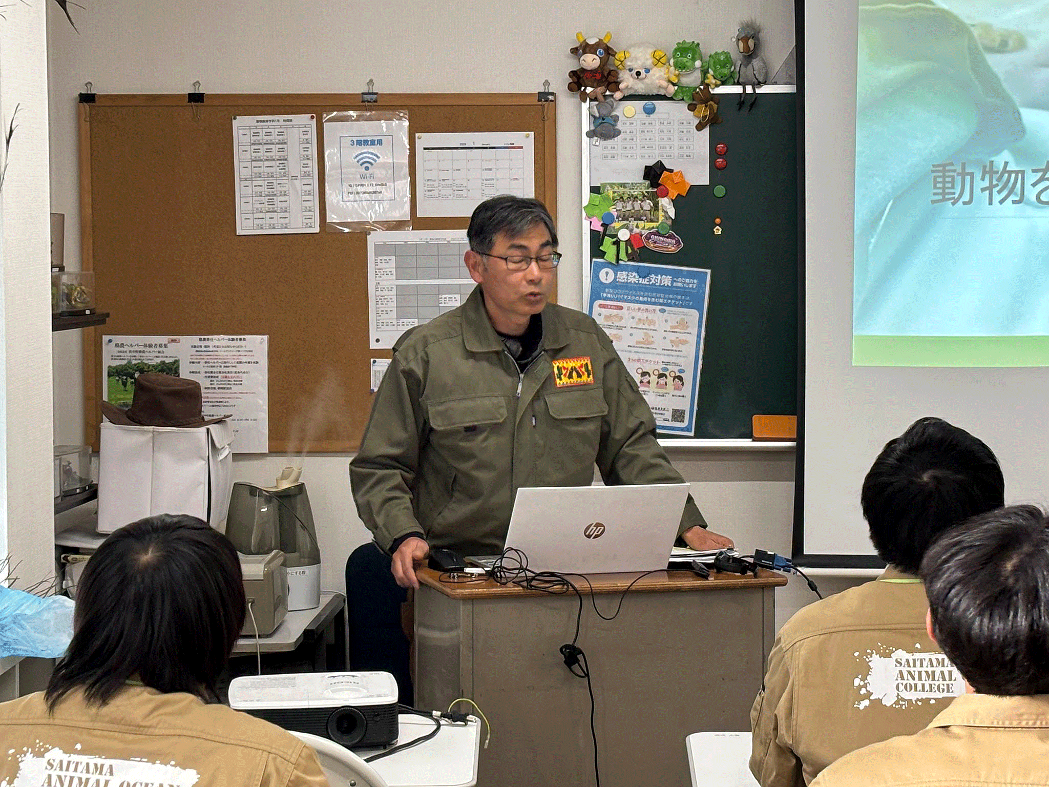 今回は、特別講義として、伊豆シャボテン動物公園の中村園長にお越しいただきました。動物園の役割、飼育員として求めれる事などを講義となりました。また講義の前には5種類の動物グループに分かれて、子供向けの動物ガイドを発表しました。
