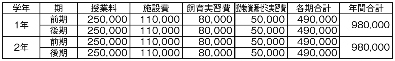 《1》学費(動物飼育学科・海洋生物飼育学科共通)