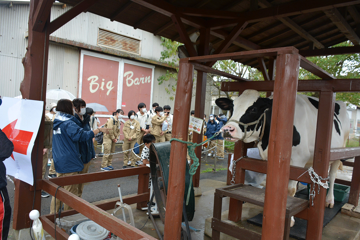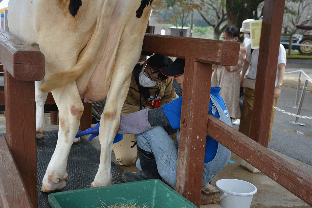園内見学では、ヤギなどのふれあい方法、ふれあいエリアの掃除をお客様ができる工夫、季節に合わせた催事について見学しました。また乳絞り教室に参加し、乳絞りの方法、必要性を学びました。