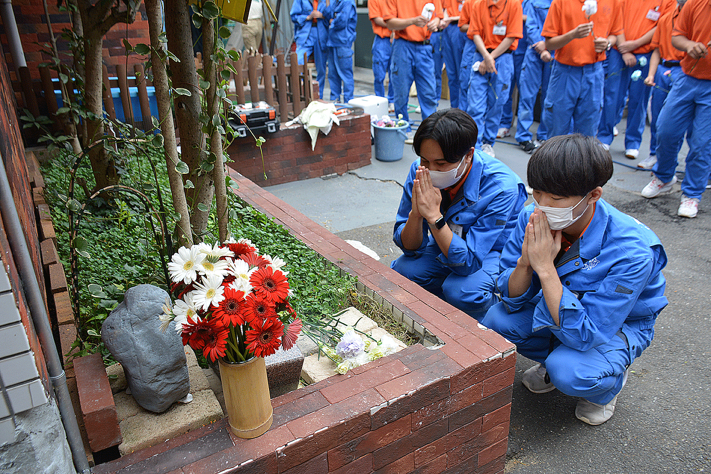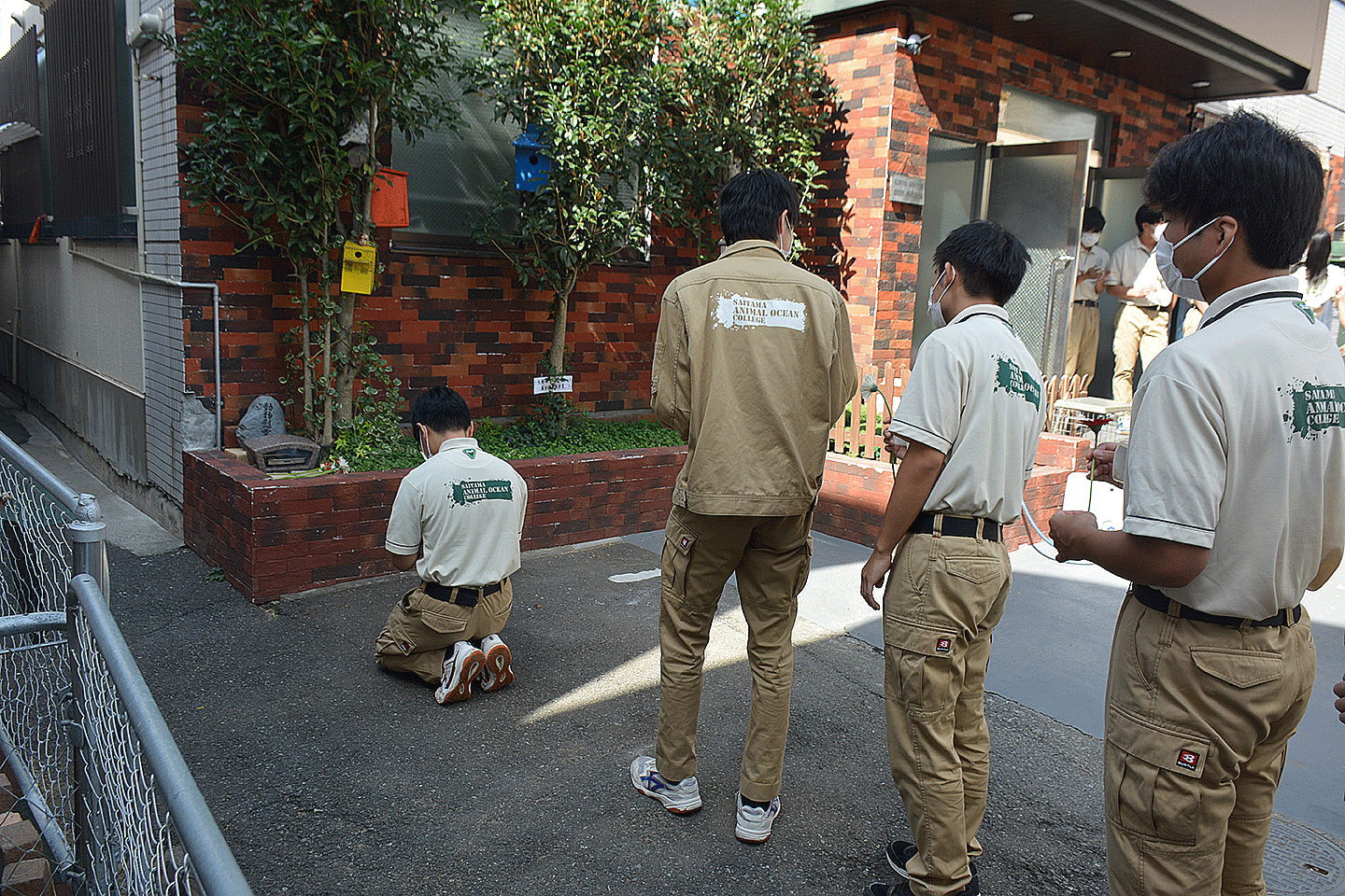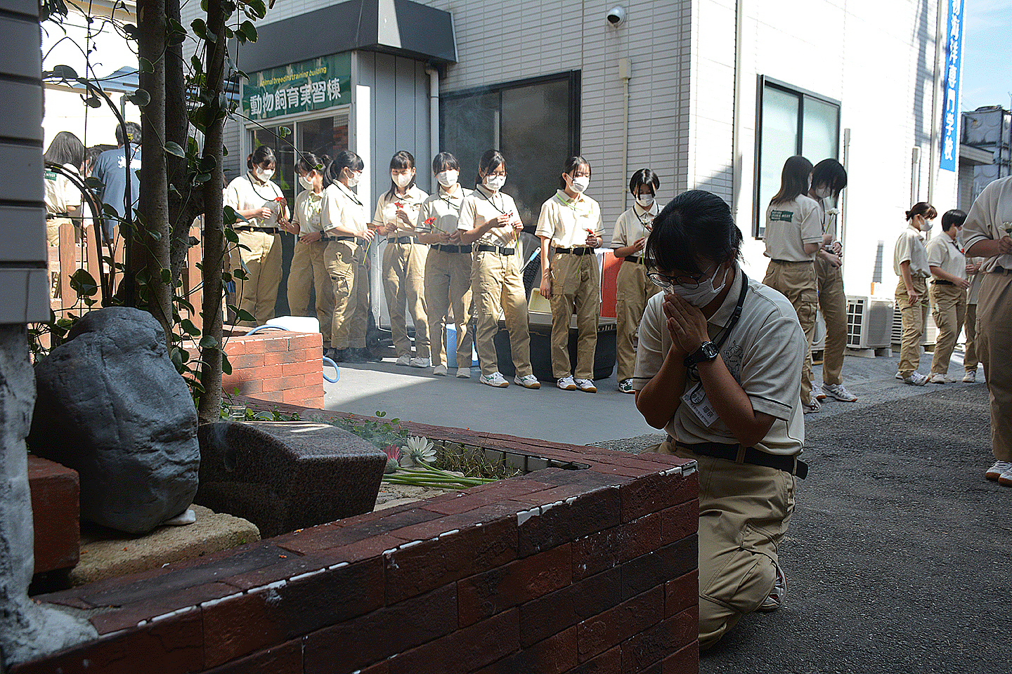 飼育管理に関連して生命を全うした動物に対する感謝をし、今後の勉学に役立てる事を誓い、献花を行いました。また卒業生、クロネコヤマトの担当者様にも献花していただきました。