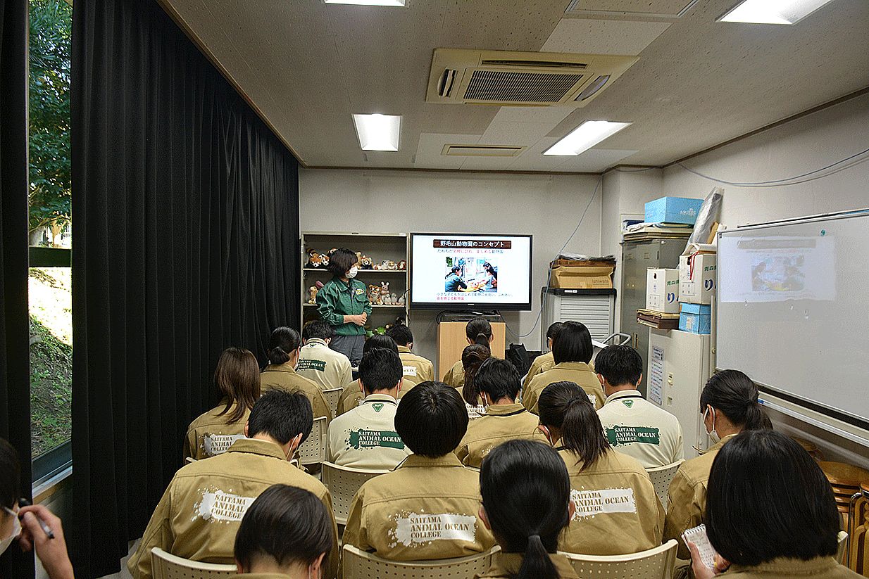 教育普及を目的とした看板や展示を見学し、講義では飼育員の求めらること、必要な知識などについて学びました。