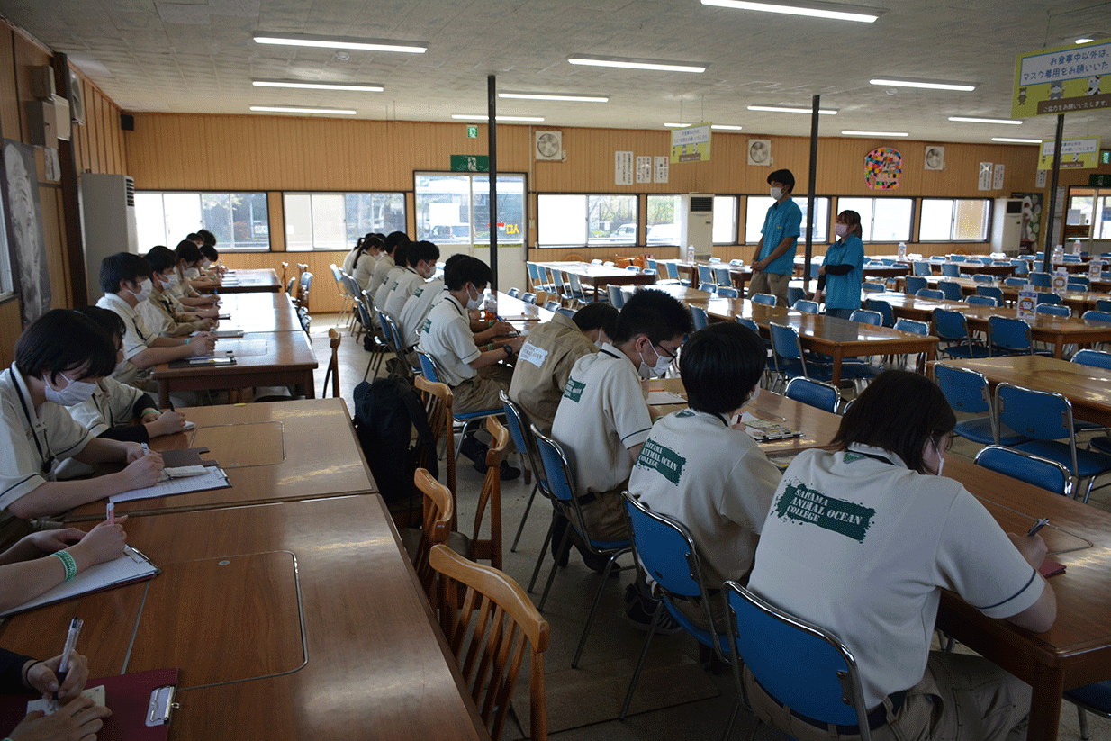 サファリ形式での飼育管理方法、ショープログラミング最後に本校卒業生にレクチャーをしていただきました。