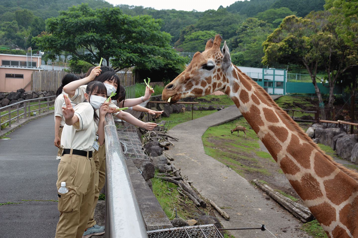 ウォーキングサファリ形式での展示、飼育員の方が作った手作り看板などを観察しながら園内見学を行いました。また動物の治療に立ち会う事ができ、新宮園長による解説で動物園の健康管理、治療について理解を深めました。