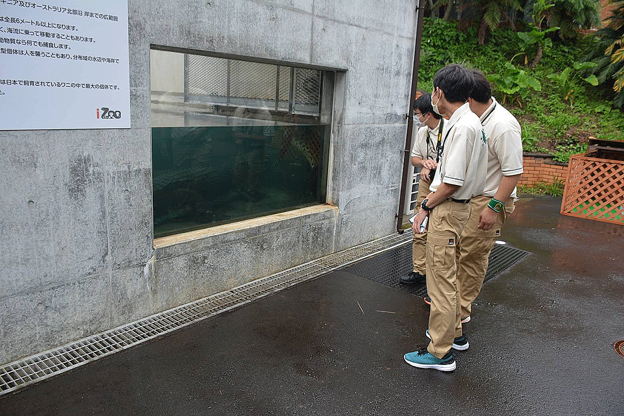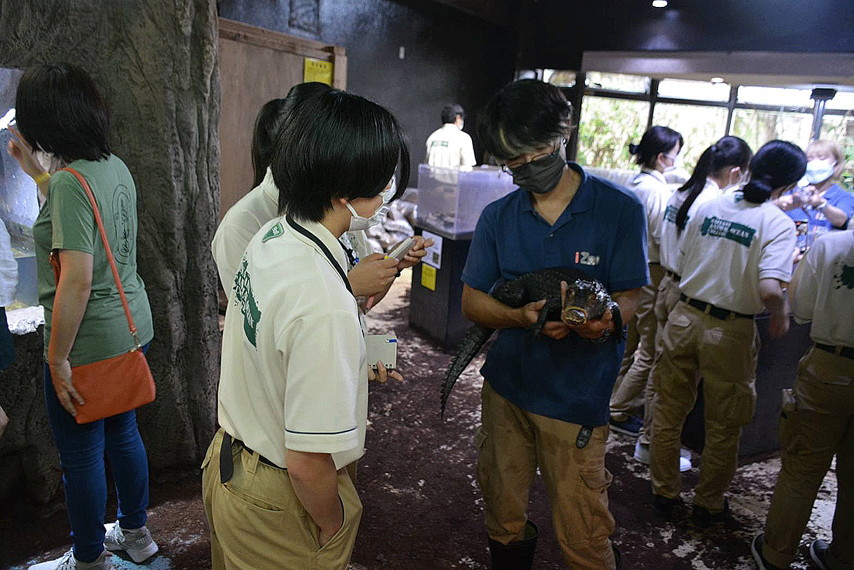 飼育課長の浜野様よりワニの生態、飼育管理、繁殖について、アマゾンマナティの飼育管理などについてレクチャーしていただきながわ園内見学を行い、有意義な研修となりました。