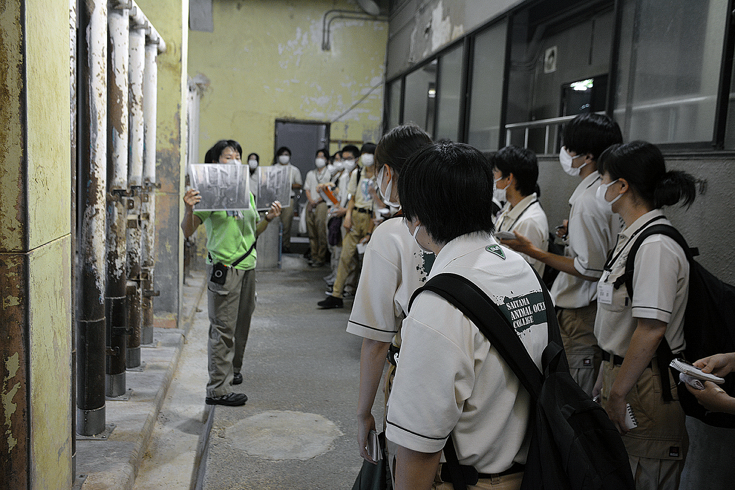 旧アジアゾウ舎のバックヤード見学を通して、新アジアゾウ舎の比較、ライオンバス、園内見学などでエンリッチメントへの取り組みや展示などについて学びました。