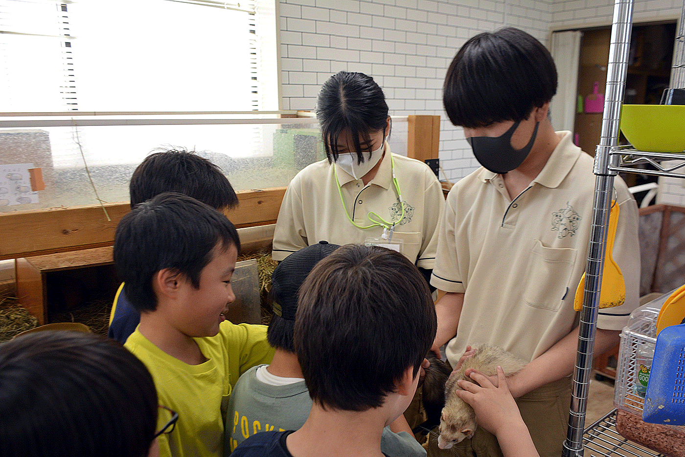 さいたま市にあるしばふハウスの皆さんが本校に遊びに来てくれました。動物や魚たちについて、本校の学生たちが紹介して見たり触れたり楽しい時間を過ごせました。学生たちにはお客様に生き物をお話しする良い機会となりました。また遊びに来てください。