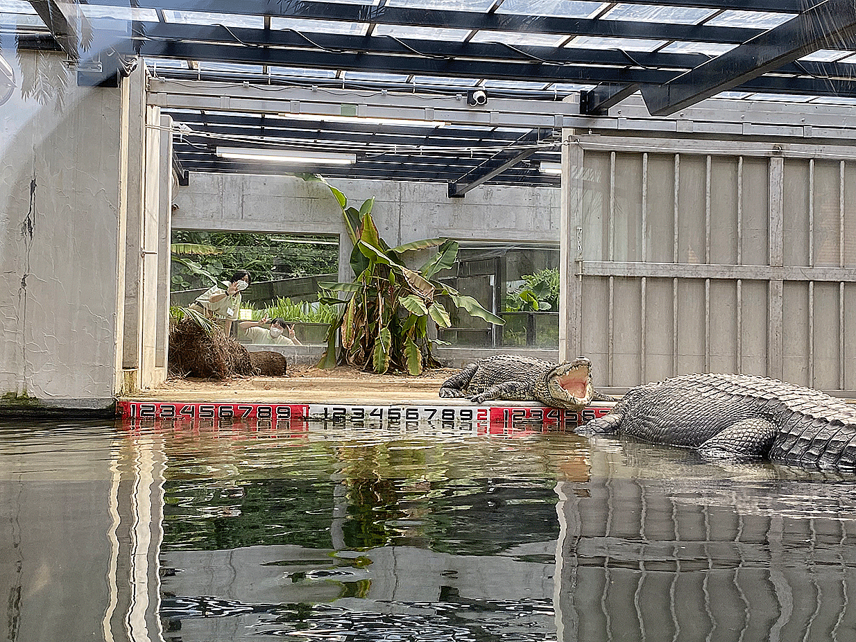 2日目は熱川バナナワニ園へ。飼育課長の浜野様よりワニの生態、飼育管理、繁殖について、アマゾンマナティの飼育管理などについてレクチャーしていただきながら園内見学を行い、有意義な研修となりました。