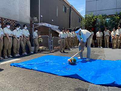 学生たちの提案で本校初めてのスイカ割りを行いました。