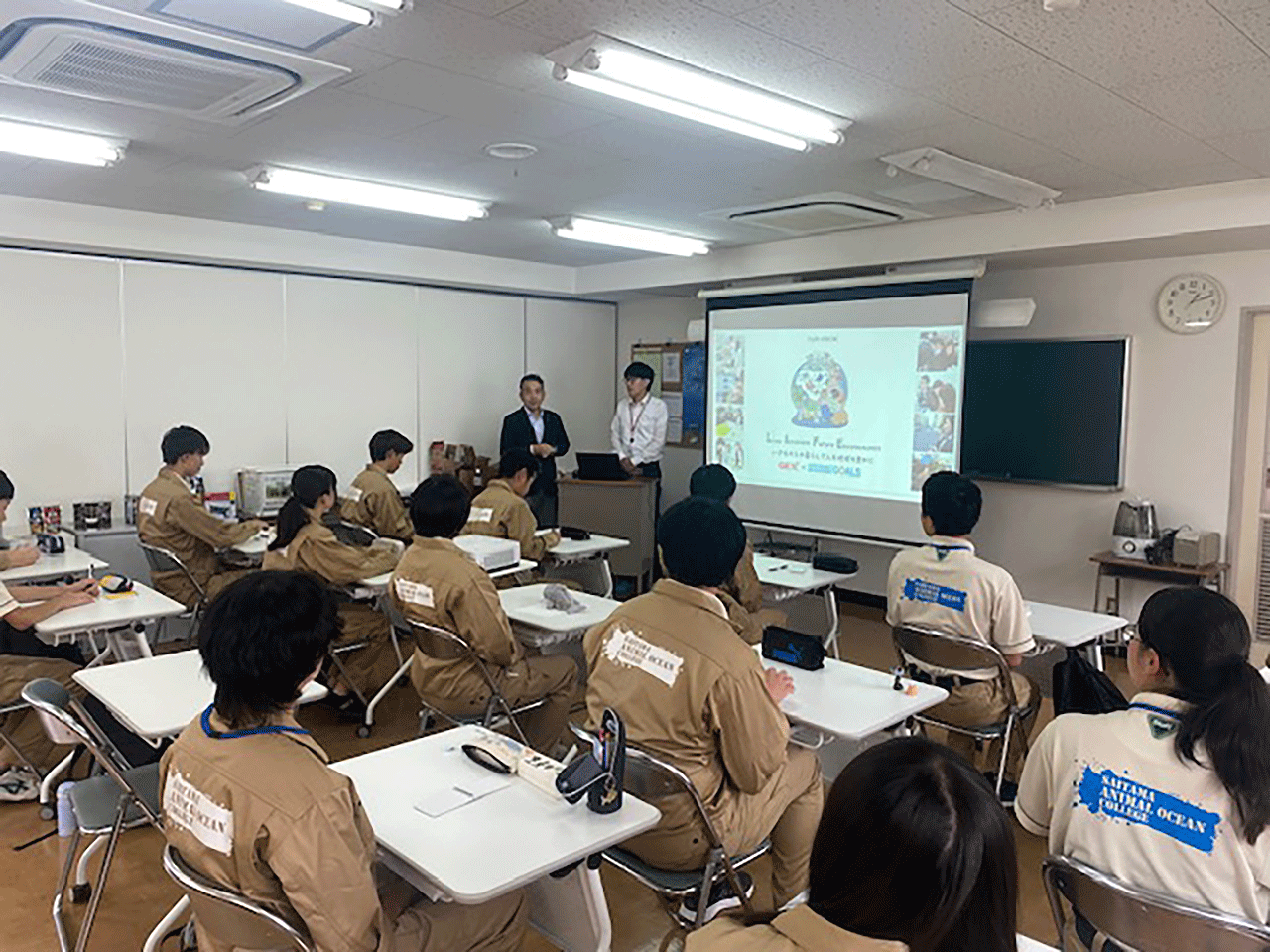 商品開発の大変さや、開発した観賞魚用のフードについてなど分かりやすく講義していただきました。