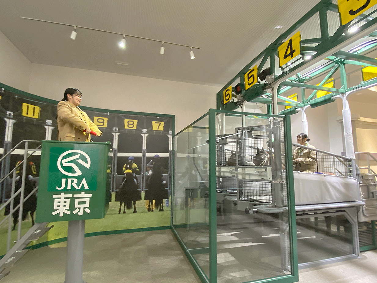 その後は、ジョッキー体験や発馬機体験をしながら競馬の世界について理解を深めました。