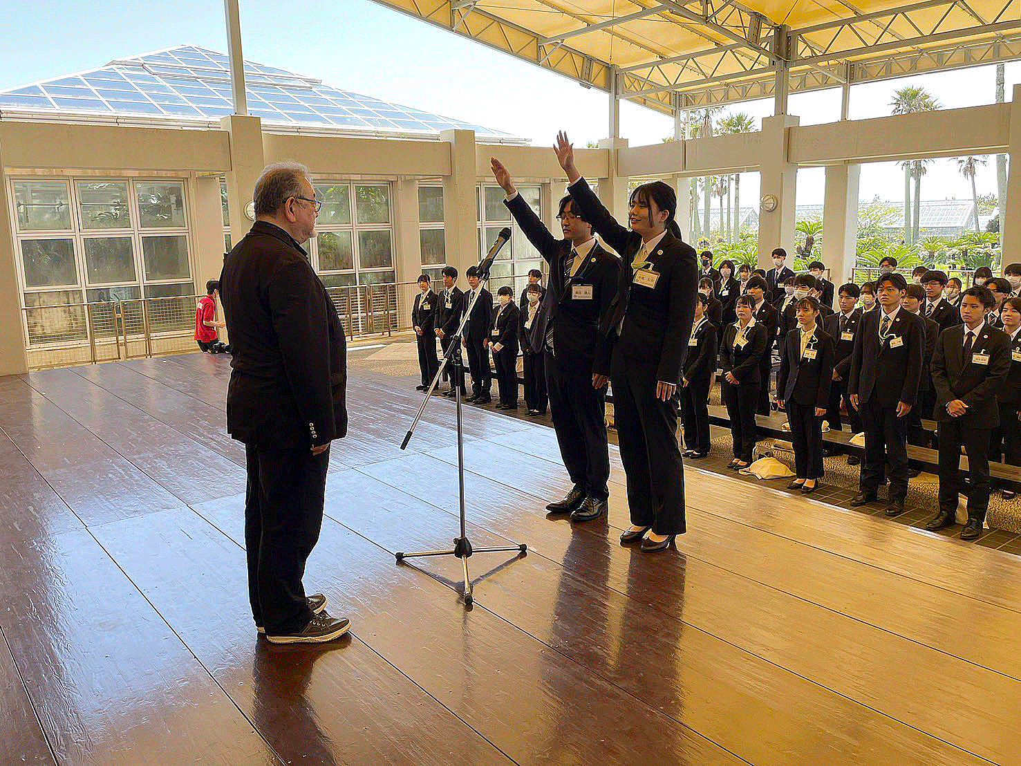 毎年恒例となったアロハガーデンたてやまにて就職出陣式を挙行いたしました。:4月17日(水)