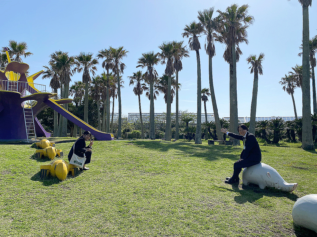 就職出陣式の後、アロハガーデンたてやまの園内見学をしました。