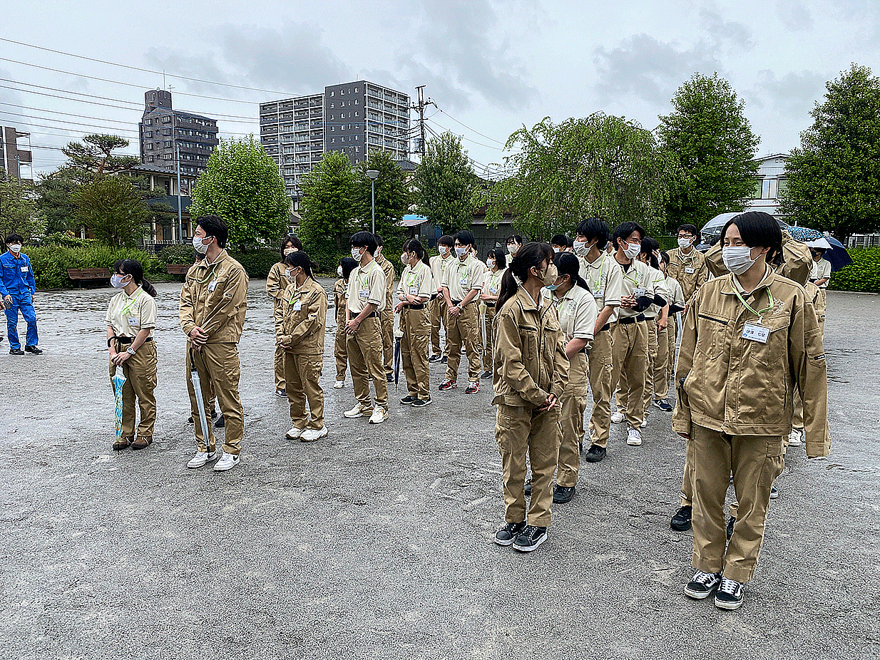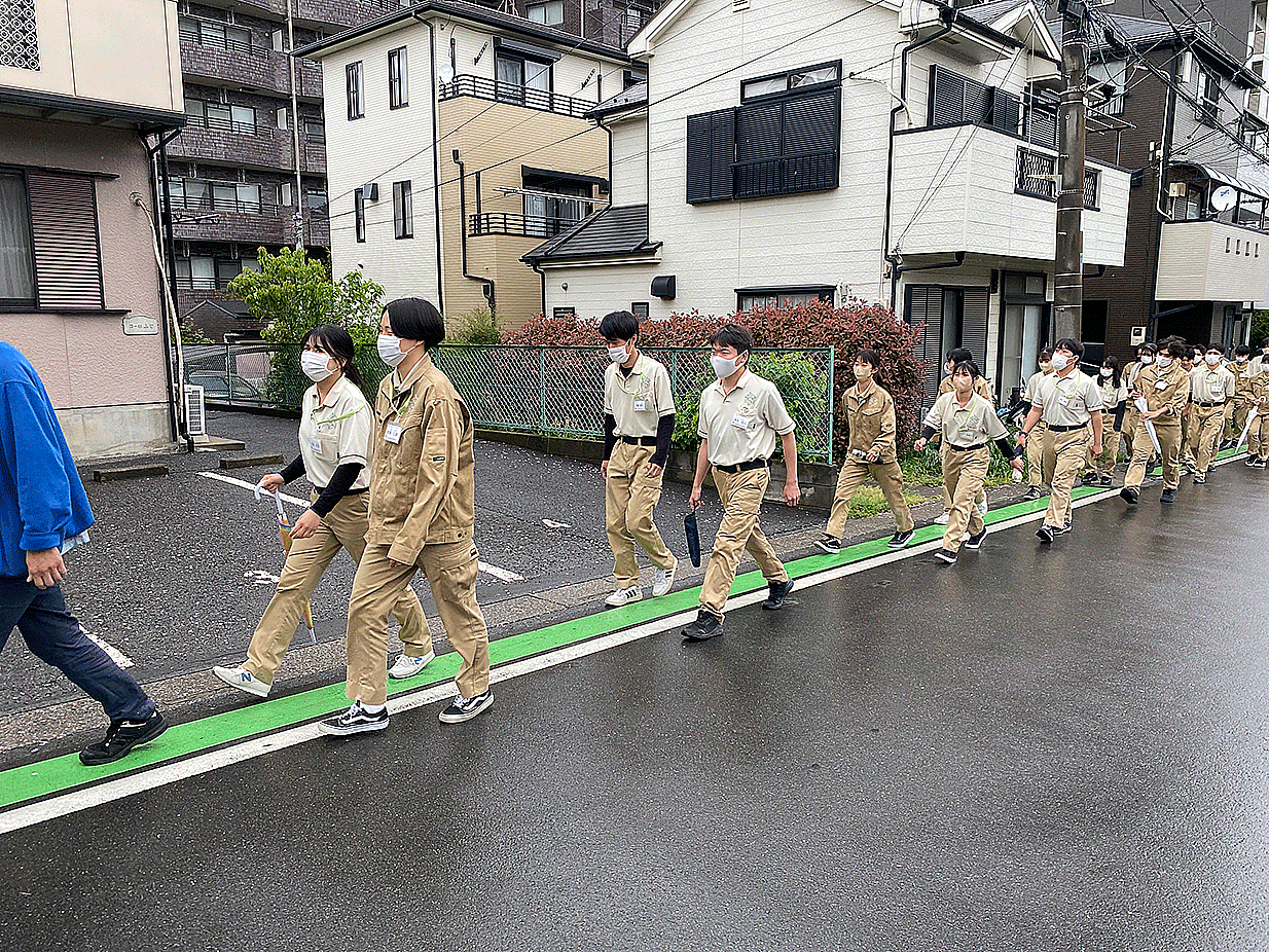 全校生徒で避難場所まで移動し、避難経路と手順について学びました。