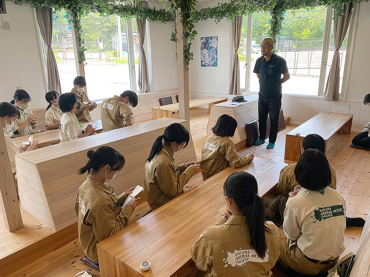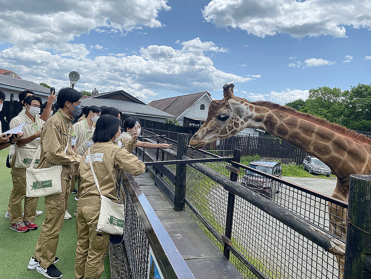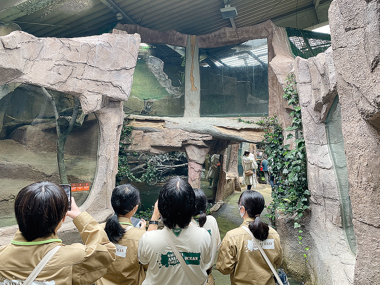 サファリゾーンの見学、講話やウォーキングエリアの見学で様々な動物の展示方法を学びました。