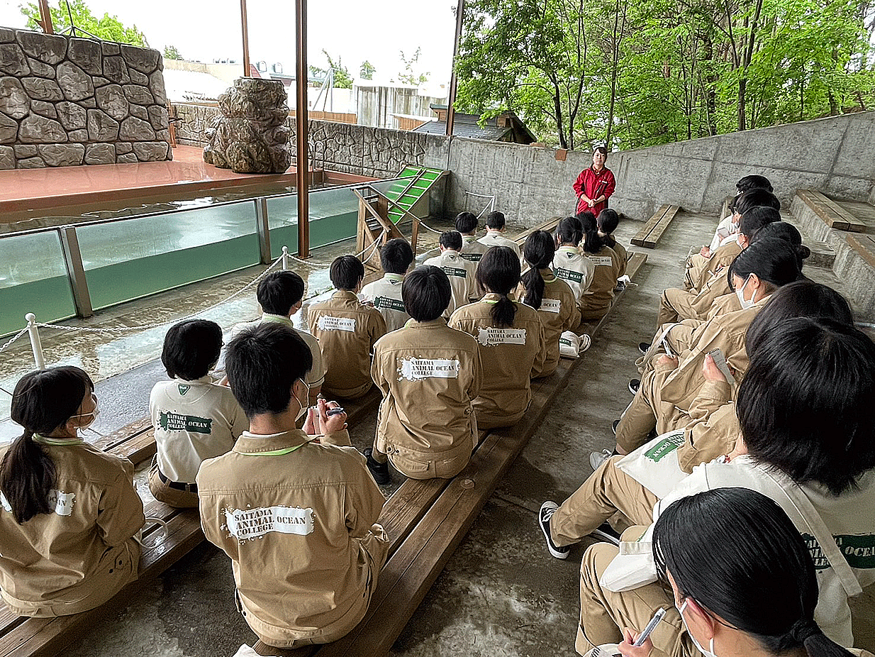 半谷様より動物園の役割や心構えなどをレクチャーしていただきました。また、フリッパーズの見学後、MCを務めている卒業生の講義、魅力ある展示手法の見学など盛りだくさんでした。