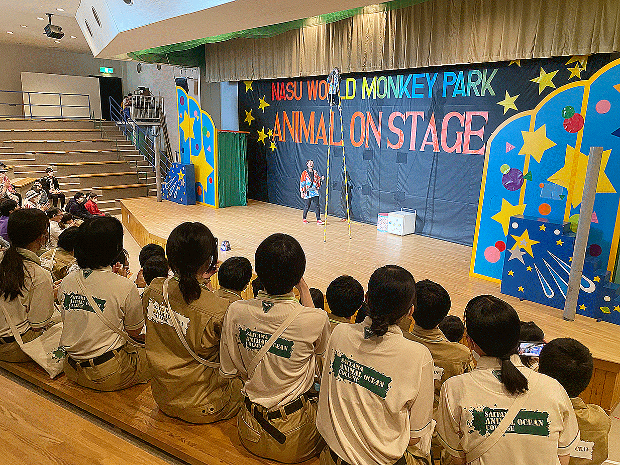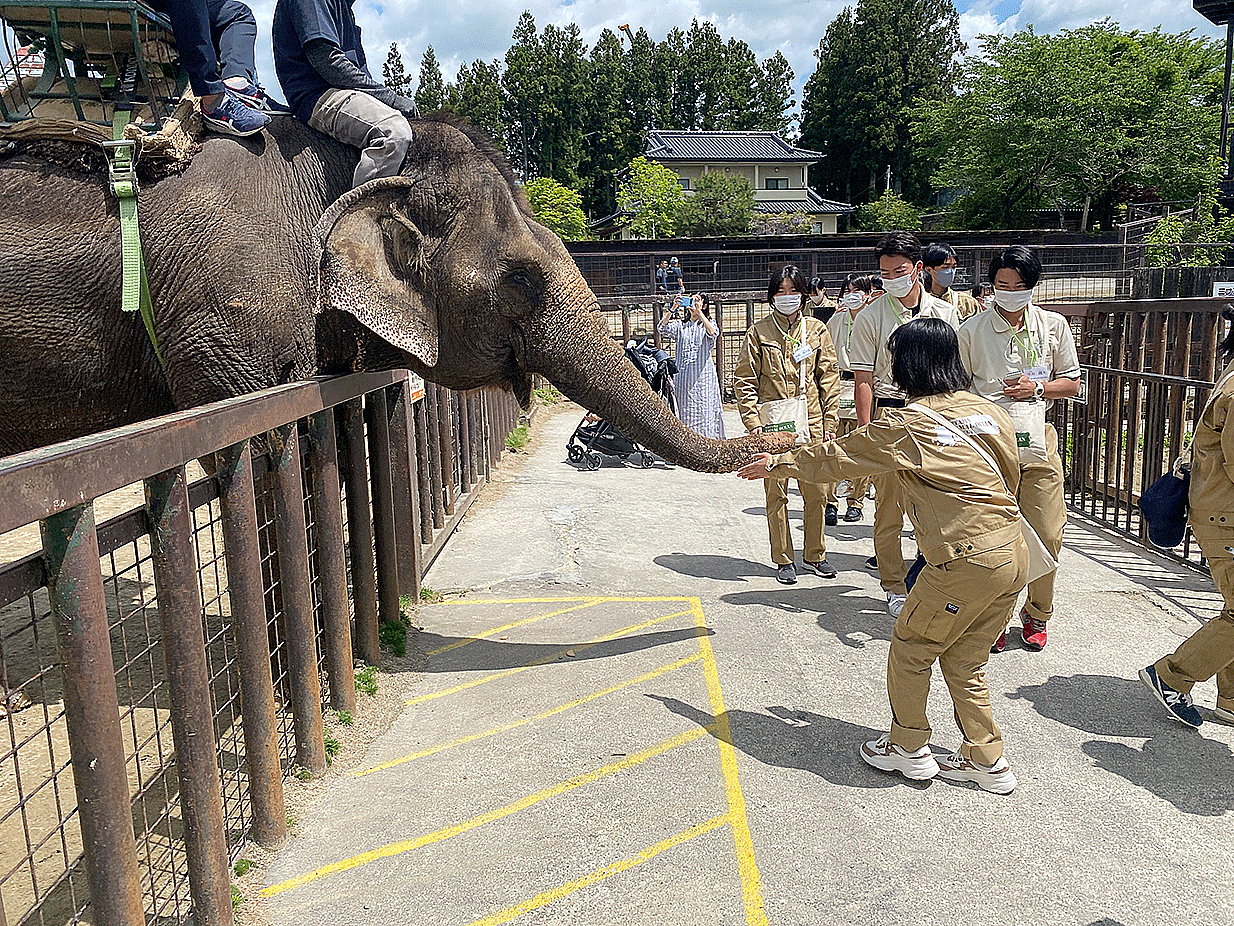 卒業生による講話やゾウライド、ショーの見学、エリマキキツネザルやリスザルのふれあいなど様々な事を経験しました。