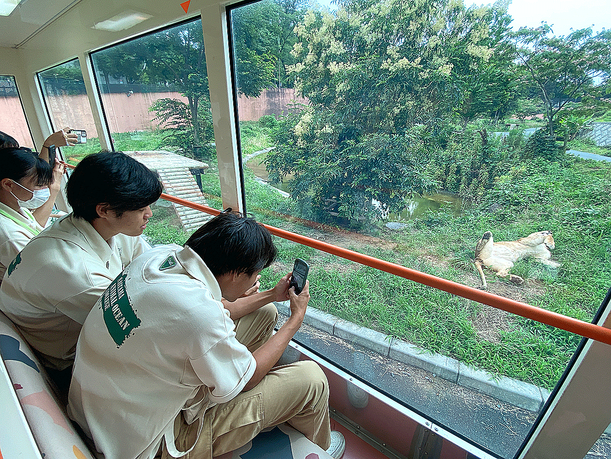 旧アジアゾウ舎と新アジアゾウ舎の比較や講義を通してゾウの飼育管理、トレーニングについて学びました。またライオンバス、園内見学などを通してエンリッチメントへの取り組みや展示などについて理解を深めました。