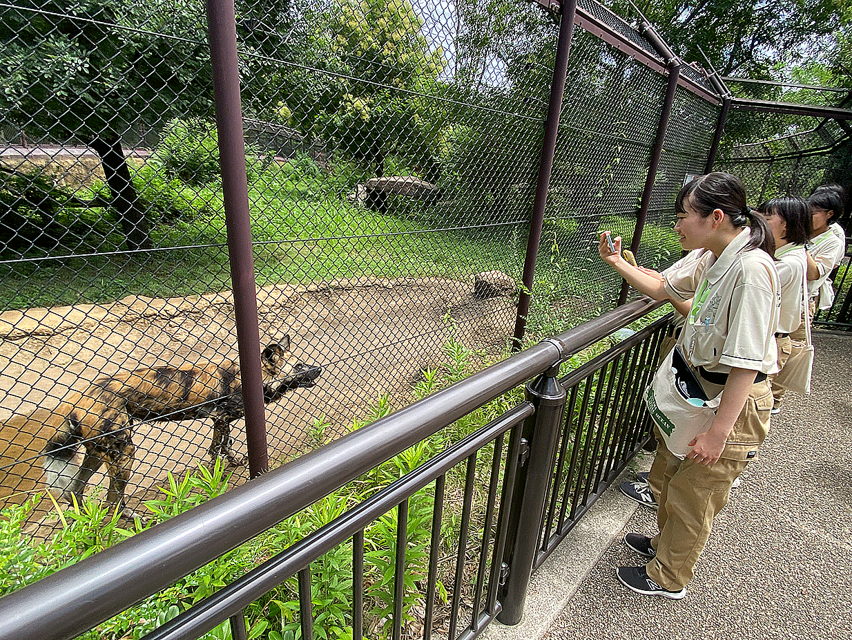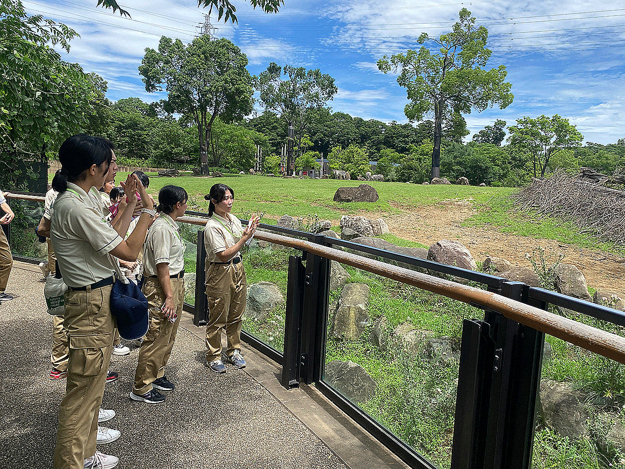 ゾーン分けされたエリアの展示方法などの目的とした見学を行い、展示・エンリッチメントについて理解を深めました。また「動物福祉の取り組み」について講義を受け、動物園の存在意義や在り方について理解を深めました。