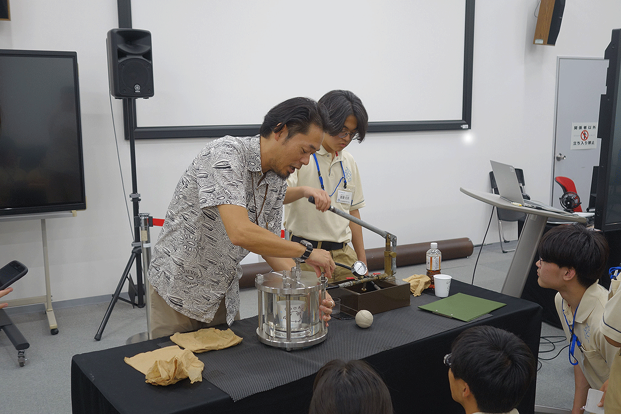 3日目の午後、海洋生物飼育学科は国際海洋環境情報センターへ伺いました。貴重な資料を見させていただき、沖縄の海の環境や、サンゴ、深海について実験を交えながら、教えていただきました。