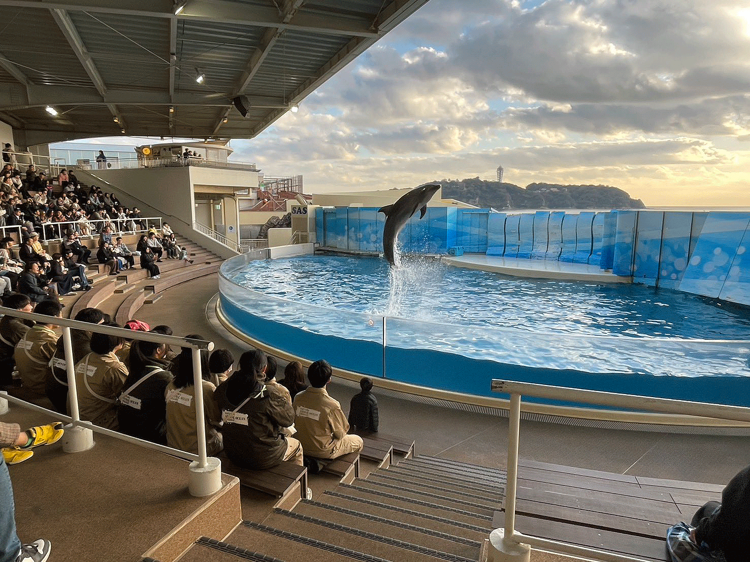動物飼育学科の2年生が、新江ノ島水族館へONEDAY研修に行ってきました。館内の水槽はもちろん、お客さんと一体となったイルカショーでのトリーターさんの動きなど大変勉強になりました。