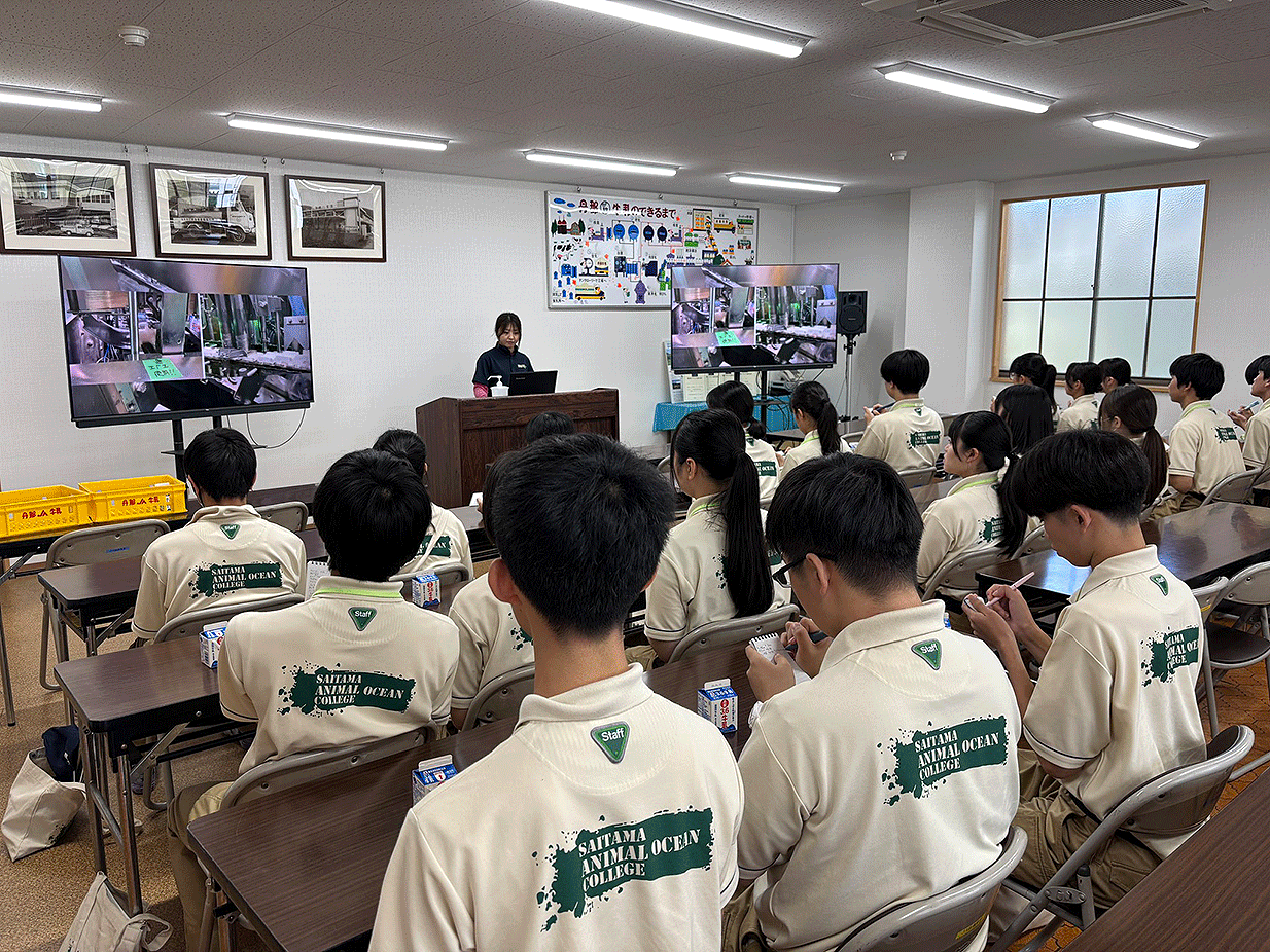 丹那牛乳の工場見学と講義を聞き、牛乳の製造過程やこだわり、園内見学ではお客様目線の展示手法などを学びました。。