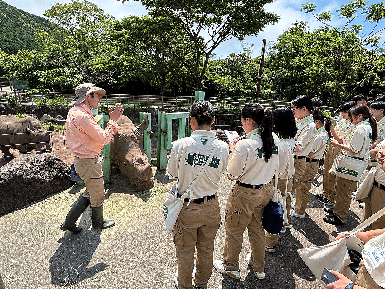 最終日は、伊豆アニマルキングダムへ。ウォーキングサファリ形式での展示、飼育員の方が作った手作り看板などを観察しながら園内見学を行いました。 またレクチャーもしていただき、有意義な研修となりました。