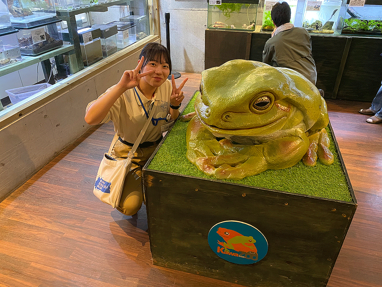 両生類に特化していて、珍しい種類や毒のある綺麗なカエル、生息環境に合わせた展示方法を見て学びました。