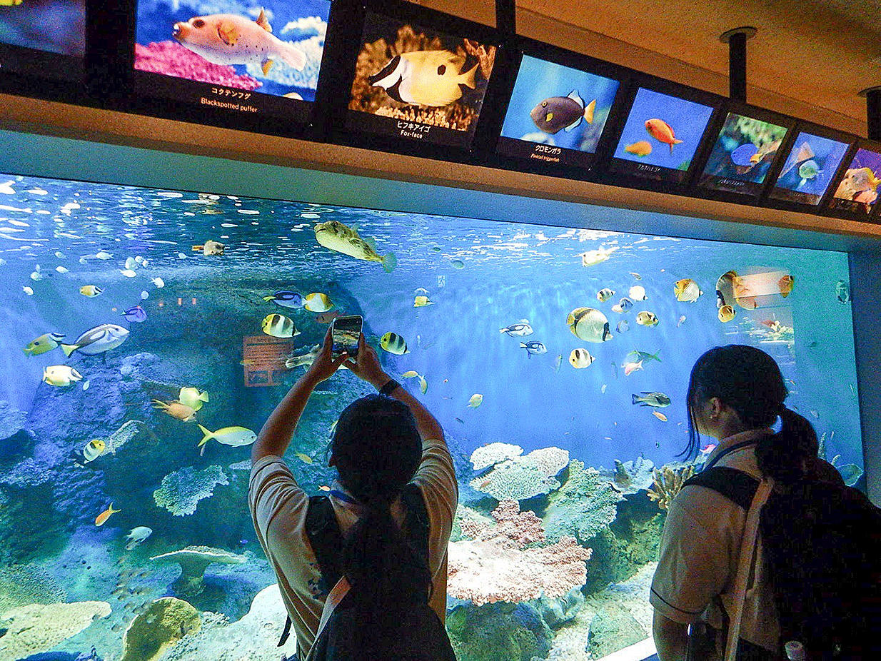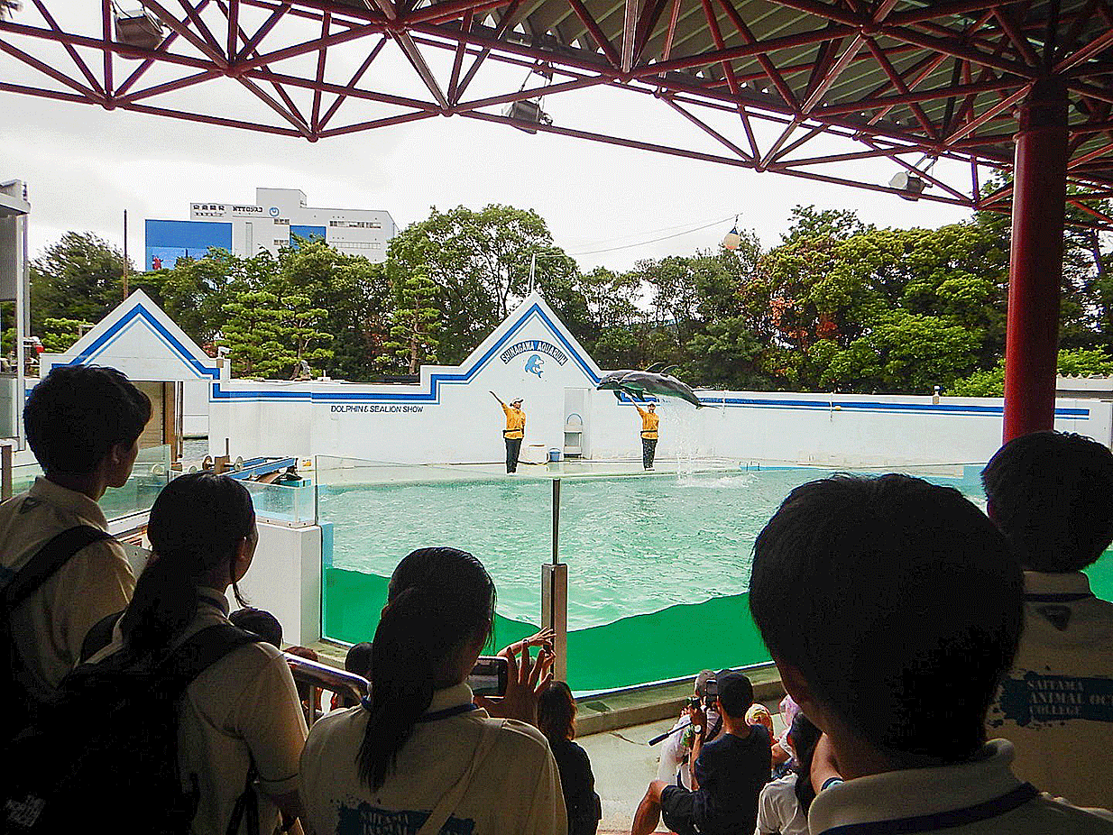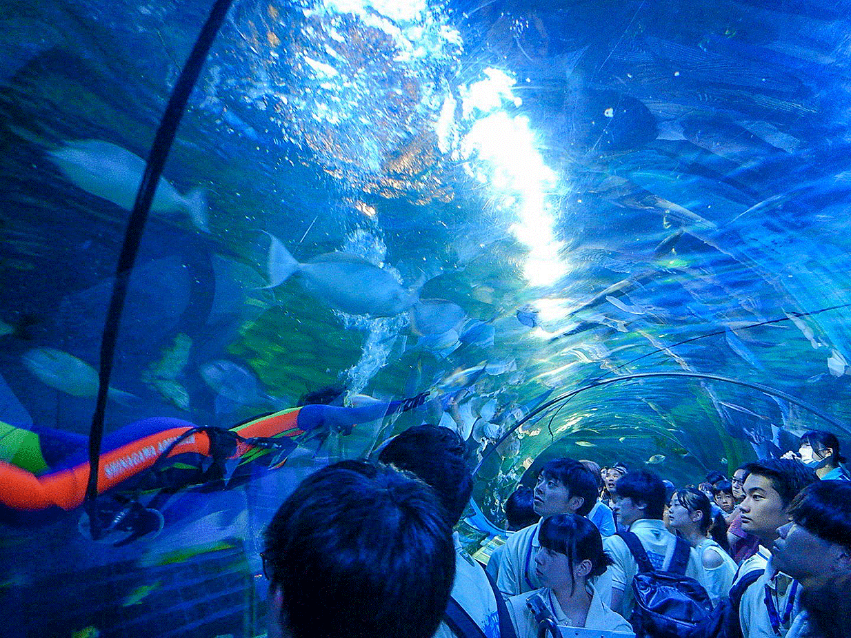 飼育員さんによる講話では、水族館における管理方法や施設について学び、学生にとって貴重な経験になりました。また館内見学では、都市型ならではの展示やショーにも注目しました。