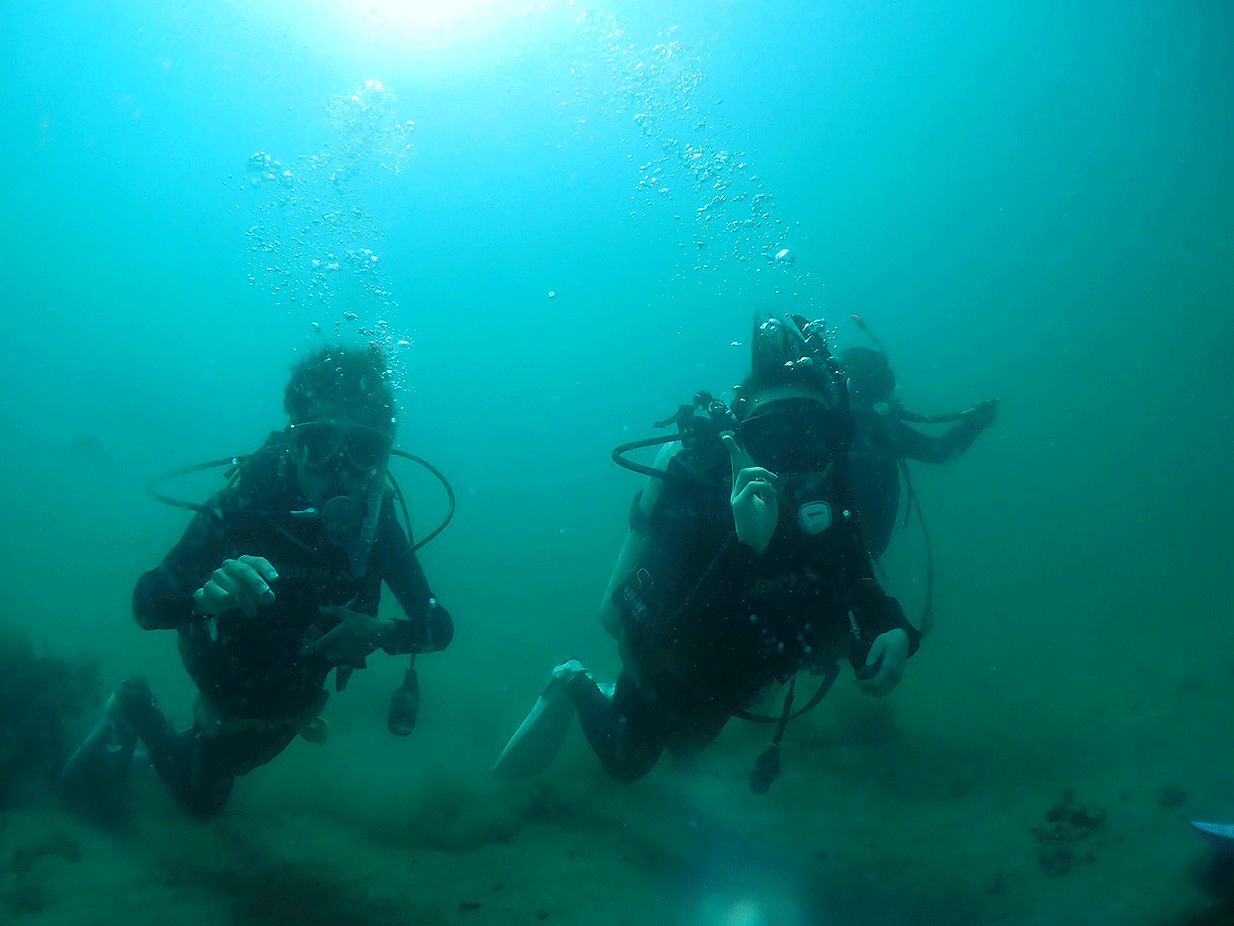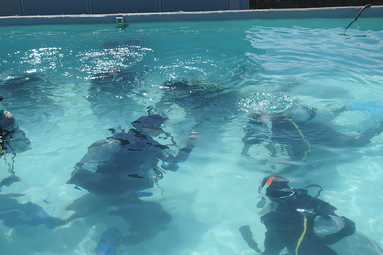 初日はプール講習から始まり、機材の装着方法や水中での呼吸の仕方など、海にでる前の基礎を習いました。2日、3日は実際に海に潜りプールで教わったことを実践しました。