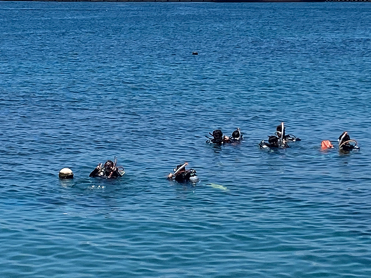 海を少し怖がっている学生もいましたが、慣れるにしたがって積極的に行動するようになりました。卒業生の協力もあり、この3日間の研修で無事にオープンウォーターライセンスを取得することができました。