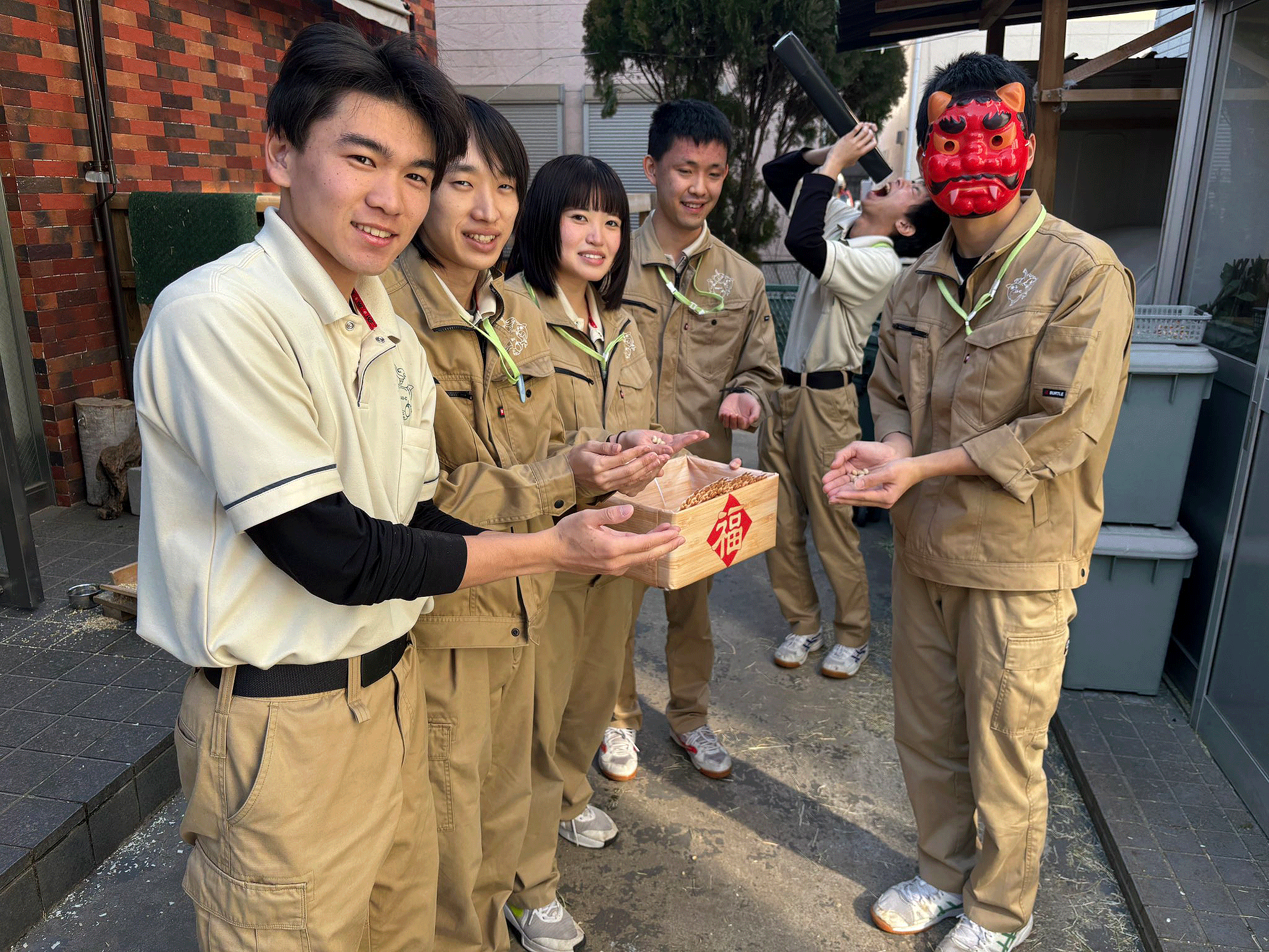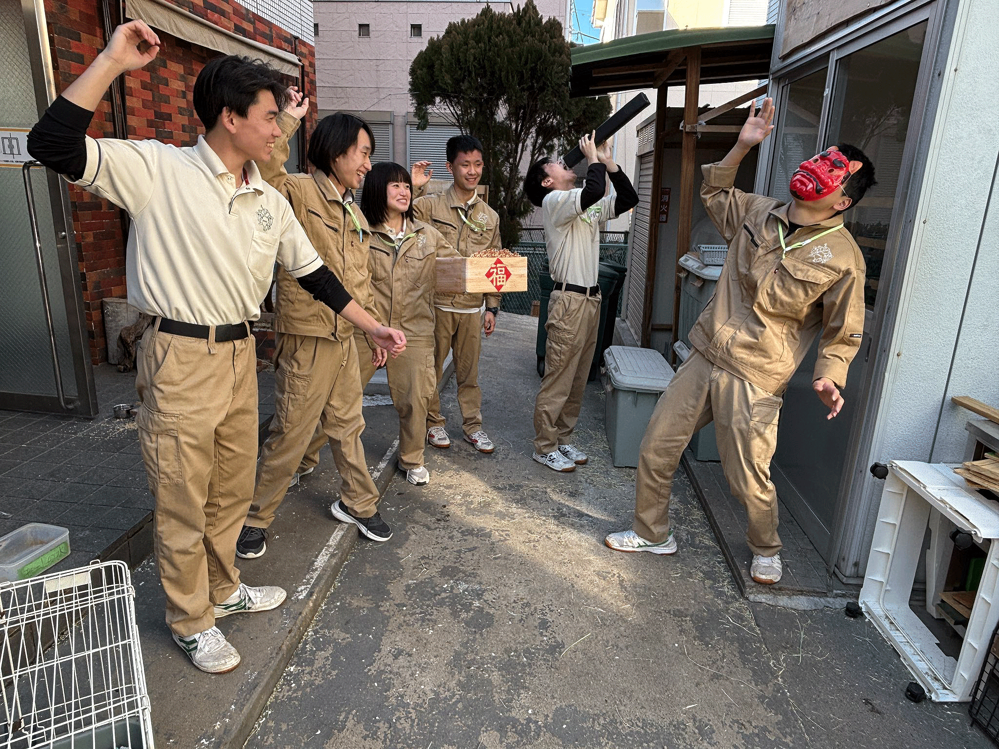 今日は節分。鬼は外、福は内! 最後はみんな歳の数分、豆を食べました。:2月開催地:当校(動物飼育学科&海洋生物飼育学科)